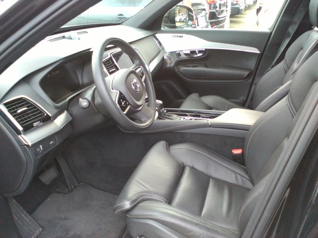 Når man klatrer ombord i den nyeste aftapning af X90 bliver man mødt af et imponerende arsinal af elektriske gadgets som spænder vidt fra blind vinkel assistent over heads up display til komplet infotainment system med touch skærm. Så efter at man langt om længe har sat sig ind i alt det her gejl finder man faktisk ud af at touch skærmen faktisk er en af de nemmere at betjene Layoutet er dejligt simpelt udført med at de vigtigeste menuer såsom radio og navigation er placeret i lag over hianden. Apropos navigation arbejder den rigtig fint den er hurtig til at beregne ny rute samtidig med at skærmoplysningen er rigtig fin både i touch skærmen og i LCD displayet som gør det ud for ens instrument klynge. Angående fit og finish scorer Volvoen også højt den Svenske fabrikant har altid været kvalitets betonet i en eller anden grad men den nyeste XC90er hæver overlæggeren endnu mere alle overflader har det helt rigtige feel samtidig med at trim i børstet stål pynter hist og her i interoiret. Så ville klart sige at kabinen er på BMW niveau. Ude på vejen spiller klaveret også undervognen takler svingene fint samtidig med at yde rigtig god komfort samtidig med at det aktive styrtøj giver fint nok med feedback. De positive rytmer går også igen i bedømmelsen af motor og gearkasse selvom diesel rækker 4eren ikke har det sidste knald som en 6 eller 8 cylinders og at den heller ikke lyder ligeså godt så klarer den jobbet fint. Den føles rimelig let løbende samtidig med at være meget kultiveret ved tomgang. Gearkassen spiller også fint de 8 trin bliver gået igemmen helt gnidningsfrit,