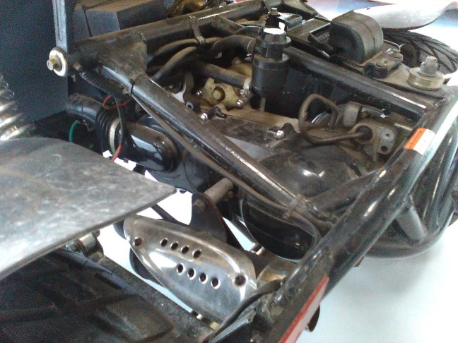 Mine erfaringer med kinroad er indtilvidere størst med deres tohjuls maskiner hvor jeg var den glade ejer af en udkørt 50 kubik mini chopper. Når man endelig fik den til at køre var den en af de sjoveste knallerter/scootere jeg har haft der var et eller andet underholdene ved at køre med gear. Så jeg glædede mig bare en smule til at komme ud og køre kinroad igen men lad mig fortælle om hvordan den kører. XT150 er et af de køretøjer man nærmere tager på end man stiger ind i når man så endelig har klikket H selen på er det bare med at fyre op for den “sprudlende” 150 kubiks 1 cylinders 4 takter som sprutter herligt den lyder helt som en tunet plæneklipper der er lukket ud på landevejen. Og ude på vejen får man netop en meget særpræget køreoplevelse det føles lettere komisk når man kommer kørende ind på den lokale spars p plads. Det føles helt forkert på en mega sjov måde. Køredynamisk er kinroaden typisk bokart styrtøjet “som forøvrigt er det mindste tandstangs styrtøj jeg har set” er tungt ved lav hastighed samtidig med at være nervøst ved høje hastigheder. Ligesom at ens bagende har en tendens til at ville skride ud i sving noget som sikkert er et resultat af den korte akselafstand. Yderligere kan jeg tilføje at bremserne selvfølgelig har fint hug men det er ikke så underligt nu hvor bilen er udstyret med hydrauliske skivebremser både for og bag og at den kun vejer ca 370 kg. Angående acceleration bryder kinroaden ikke ligefrem lydmuren tophastigheden er opgivet til 60 i timen og det tager også sin tid at komme derop. Men kræfterne bliver leveret smidigt nu hvor XT150eren er udstyret med CVT gear,