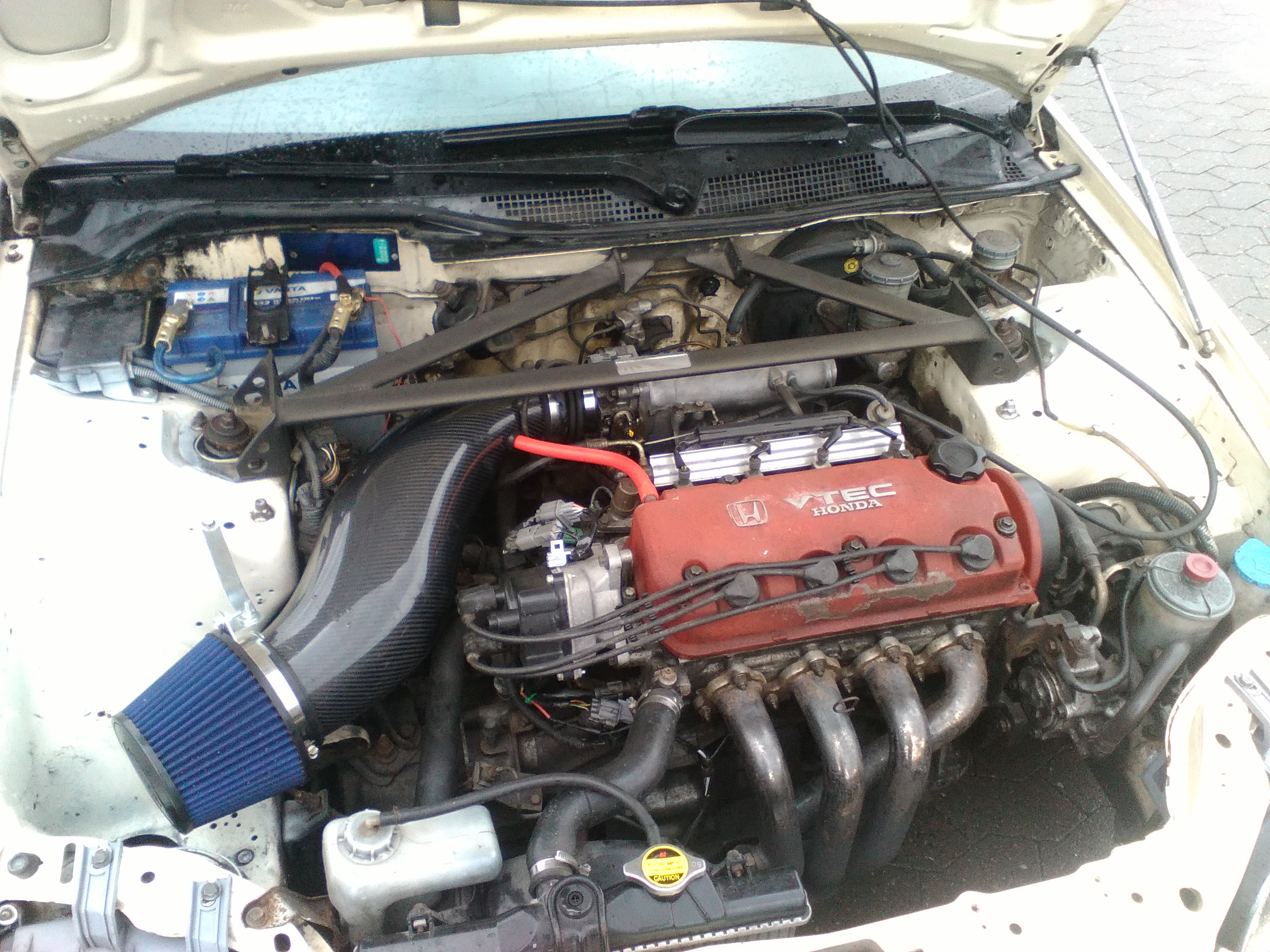 Det der gjorde dette eksemplar af civic EG special var at den var udstyret med D15B motoren som er en motor der normalt kun ligger under hjelmen på hjemmemarkeds udgaverne. Vi fik også at vide at det var den eneste D15Ber der var i landet. Men det er ikke nogen dårlig maskine modsat de fleste andre Honda motorer der kører på danske veje. Er D15eren udstyret med ægte V tec der modsat øko V tec er god for en omdrejningsgrænse på 8-9000 omdrejninger i minuttet. Udover at have et fyrigt temperament yder D15eren 135 heste allerede fra fabrikken hvilket er mere end tilstrækkeligt til den 1000 kilos civic. Det føles mega underholdende på en ukompliceret og uforpligtende måde at komme i et hurtigt sving hvorefter at trykke sømmet i bund så nålen flyver op i det røde felt. Angående gearkasse bliver man også belønnet med korte præcise skift som har et metallisk feel. Jeg har fundet ud af at selvom at civic`en er en økonomibil er gearskiftene meget lækre. Angående køreegenskaberne er denne lille Honda lige som den skal være undervognen er stramt sat op takket være dette eksemplars eftermonteret koni støddæmpere samt skunk2 camberkit. Yderligere kan jeg sige at styretøjet føles dejlig stramt men præcist,