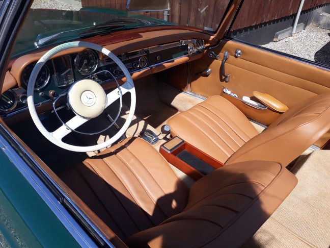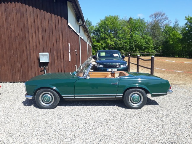 At føre bil kan være en meget stressende affære. Man kan være så uheldig at man sidder i den værste myldretid og så skal man nå at handle ind inden 18 imens at ens barn hund eller hvad man nu har som bagsæde passager er ved at rive alt fra hinanden omme bagved. Men noget af det mest afslappende Jeg har prøvet på egen krop er at køre en klassisk Mercer igennem en forårs grøn skov og det er uanset om det er med eller uden tag. Det er lidt terapi for bilnørder. Når man stiger ind i begge biler bliver man budt velkommen af nogle meget indbydende interiørs især Pagoden har en varm glød med det cognac farvet indtræk og de beige gulvtæpper. Også ude på vejen bliver man vartet op. 220SB.eren kræver lidt flere armkræfter at manøvrere med ved lav hastighed på grund af manglende servostyring men ligeså snart man er i fart er styretøjet let og flydende som det skal være i en bil af denne støbning. Alt dette sker imens at undervognen absorberer alle tænkelige ujævnheder. Når man så bliver sat over i W113eren kan man godt mærke at det er den mere sportslige af de to. Der er mere lyd fra udstødningen samtidig med at undervognen føles mere fast. Men heller ikke så meget at det går på kompromis med komforten. For W113eren er stadigvæk et behageligt kendskab. Det føles virkelig som om at man kunne tilbringe timer bag rattet uden alt for mange problemer.
