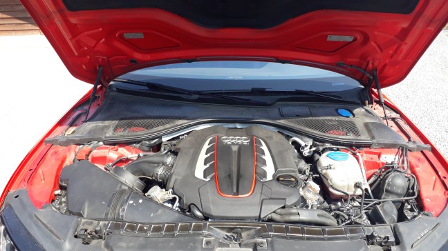 Der er nogle biler der kan det hele. De har mange facetter om man vil der er S7eren en af dem. Men hvor mange ting kan den egentlig det finder vi ud af nu. Når man stiger ind og trykker på startknappen springer V8eren igang med en dyb buldren der er ikke så meget lyd på den som i andre supersedaner men der er alligevel nok til at give et hint om at det her ikke er den 4 cylinders Dansker udgave af A7eren. Også under kørslen er der et godt lydbillede. Under hård acceleration brøler motoren herligt ligesom en sugemotor generalt har ingenørerne hos Audi gjort et godt arbejde med at maskere turbostøjen. Det er faktisk kun ved mellemgas at jeg syntes at der var et hint af Wastegate prust og turbo hvislen. Angående køreegenskaber er denne bil et rart bekendtskab generalt synes jeg at A7 er en rimelig velkørende bil. Så derfor syntes jeg ikke at køreegenskaberne er meget anderledes i forhold til standard udgaven. Den har samme godt vægtet styretøj og dynamiske svingegenskaber. Og da dette eksemplar også står på rimelig store fælge er kørekomforten ikke så høj som den kunne have været. Angående gearkasse er det her også en ok bil. Efter at have kørt den gamle RS4 med den 6 trins manual må jeg sande at jeg aldrig kommer til at skifte ligeså hurtigt som en godt kalibreret automat gearkasse. Jeg følte slet ikke at mine gearskift kunne følge med motorens lynhurtige speederrespons. Men det er en anden historie i S7eren. Når man skal foretage en hastigheds ændring skifter den prompte et par gear ned hvorså at fanden tager ved den så man bliver slynget tilbage i førersædet. Det er faktisk kun ved acceleration fra stilstand at der er lidt et dødpunkt. Og så er skiftepadlerne ikke så responsive som de kunne have været så jeg endte bare med at køre i hel automatisk program hele turen igennem. Men det at cruise klarer gearkassen næsten ligeså godt som hurtige accelerationer. Ved motorvejskørsel sørger det syvende gear for at motoren er helt u anstrengt samtidig med at den skifter silkeblødt ved stille acceleration.
