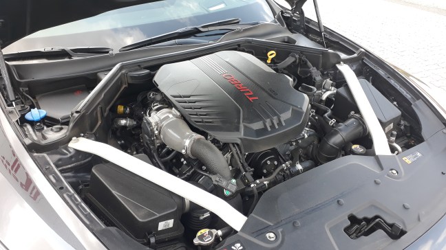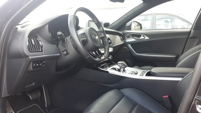 Første gang jeg fik mulighed for at sidde i en stinger var det første jeg tænkte på at Kia virkelig har gået Tyskerne i bedende. Finish og materialevalg er virkelig en Audi eller Mercedes værdig. Også interiørets design minder virkelig om noget at Audi kunne havde lanceret. Jeg synes i hvert tilfælde at man sidder ligeså godt som i nogen Tysk bil sæderne giver rigtig god støtte samtidig med at yde høj komfort. Også angående køreegenskaber føles det her som en meget dyre bil. Styretøjet føles let og flydende ved lav hastighed samtidig med at det strammer op ved motorvejs hastighed. Undervognen er også rigtig godt afstemt. Den føles kontant men heller ikke overdrevet ukomfortabelt og da Stingeren ikke har nær så lav dækprofil som en A7er ofte har er den faktisk meget behagelig at køre i. Motoren er også rigtig god. Den lyder ikke ligeså godt som en række6er eller en v8er. Under acceleration lyder den lidt som VR38eren i Nissan GTR hvilket på en eller anden måde er meget cool. Men den trækker godt og så er speederresponsen rimelig hurtig det føles virkelig som om at den faktisk har 370 heste. Gearkassen skifter faktisk også fint under hård acceleration skifter den prompte uden at tøve en kende. Det er faktisk kun når man kører stille at den ikke skifter ligeså smidigt som en Audi ville gøre. Men det er så lidt at jeg tror at en ikke bilkyndig person ikke ville lægge mærk til det.