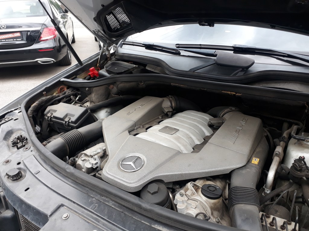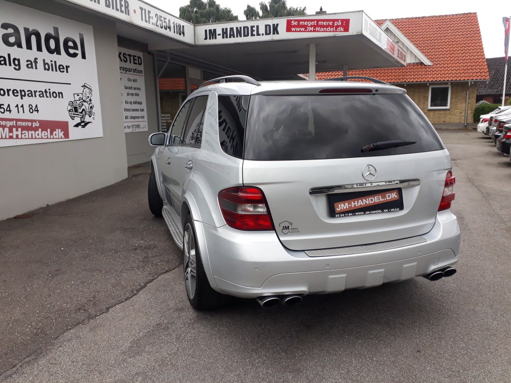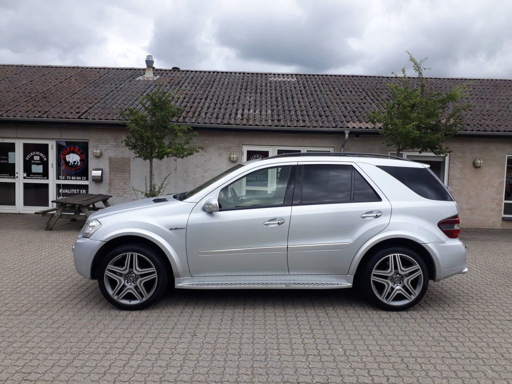 Pas på nu kommer der en lidt stærk ytring ind fra højre. For folk må mere end gerne kalde mig gammeldags nu hvor jeg siger at en ægte AMGer helst skal have 8 eller 12 cylindre under motorhjelm. Jovist er jeg rigtig vild med de nuværende A45ere. Jeg syntes oprigtigt at det er en mega fed GTI bil. Jeg syntes at det er vildt imponerende at den teknologiske udvikling er så fremskreden at man kan producere en 4 cylinders turbomotor der udvikler imellem 380 og 420 heste fra fabrikken afhængig af årgang men som stadigvæk lever op til gældende emissionskrav hvor så at man sælger den med nybils garanti og det hele. Men når vi taler de store sedaner og SUVere så tæller størrelsen altså. Og med den gamle M156er som ligger imellem forhjulene på dagens testbil så bliver det næsten ikke større. Og til dem der har levet i en jordhule hele deres liv eller som bare er pisse ligeglad med biler kan jeg fortælle at M156 kan beskrives som en Chevrolet bigblock der har gået på Stuttgart universitet hvor den har erhvervet sig nogle gode manér og derved blevet sofistikeret. Det er en V8er i Amerikaner størrelse (6.2 liter men markedsført som en 6.3) lyden under stille kørsel er også hen mod de Amerikanske V8 kværne med at man har en nærmest tordenagtig buldren der flyder ud af afgangsrørene. Men når man trykker speederen i bund bliver maskinens temperament nærmest forandret. Den dybe buldren bliver ændret til et arrigt raspende brøl. Speederresponsen er lynende hurtig og så kommer omdrejningsmomentet på næsten med det samme. Under de korte små accelerationer viser maskinen virkelig sit sande ansigt. Man skal ikke tage fejl for det her er en ganske højtydende maskine bare for at nævne et par af specifikationerne kan jeg sige at i denne applikation yder motoren henholdsvis 510 heste og 630 newtonmeter. Og så er omdrejnings-grænsen sat til 8000 omdrejninger i minuttet. Men også den måde at M156eren er konstrueret på minder mere om en højtydende sportsvogns-motor end en gængs gadebils-motor. For eksempel er pejlestængerne konstrueret med en såkaldt fracture split teknik hvor man støber hver pejlestang i et stykke hvorpå at man ved hjælp af specialværktøj separer halvdelene med at lave et par naturlige sprækker så man på den måde har færre stresspunkter og derfor mindre chancer for metaltræthed som selvfølgelig kan føre til et motorhaveri. Men efter at vi prøvede at puffe lidt til den fandt jeg ud af at fordi motoren reagerer så hurtigt på ens speederinput så kan den gamle 6 trins automatgearkasse ikke helt følge med når man kører i manuelt program. Men det kan afhjælpes med at man slækker en smule på gassen imens man trykker en ekstra gang på padlen så computeren registrer det. Så det er i hvert tilfælde ét punkt hvor man godt kan mærke at MLeren ikke er helt ny mere. Men under stille kørsel skifter den dejlig smidig og problemfrit som den skal i en mercer. Angående køreegenskaber føles ML63 dog mere hverdagsagtig. Den kører absolut ikke elendigt men til gengæld er den heller ikke hylende morsom at køre i. Dog kan man sagtens mærke at undervogn og styretøj strammer mere op når man kører i sportsprogram det er den eneste gamle bil jeg har kørt hvor jeg tydeligt kunne mærke forskel på de forskellige køreprogramer. Men overordnet set syntes jeg den kører som en sports SUV skal. MLeren føles mere selvsikker igennem svingene end en standard SUV. Angående design scorer W164eren også en ganske god karakter. Jeg har aldrig fundet ML eller nogen anden SUV besynderlig smuk. Men AMG overhalingen med skærmforøgere og dybere skørter samt kofangere har virkelig gjort underværker for designet. Jeg syntes faktisk at den ser meget cool og sportslig ud.