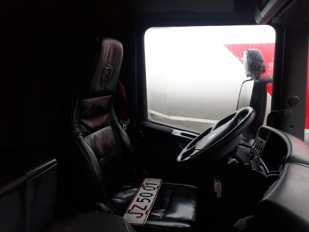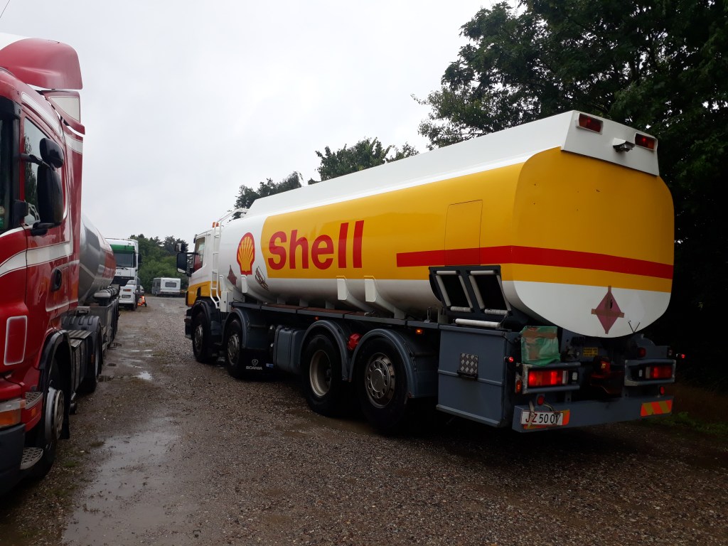 Hej og velkommen tilbage til endnu en lastbiltest. Jeg har i noget tid kigget efter en mindre lastbil jeg kunne køre til bloggen af grunde som åbenbart kun jeg kender. Og det må siges at dagens mission både lykkedes og mislykkedes. For bilens motor er noget mindre end musksvulmende V8er der ligger under hytten på R500eren jeg kørte i vinters. Men fysisk er den en af de største jeg har kørt. Men hvordan føles det at køre tankvogn og ikke kampvogn. Til at starte med skulle man vænne sig til at dagens testbil har to styrende aksler hvilket forbedrer styreegenskaberne især ved lave hastigheder. Yderligere er overhæng-et over den bagerste bagaksel lidt længere end på andre tungvogne jeg har kørt cirka 3 meter for at være præcis hvis man skal tro ejeren. Det længere overhæng skyldes at det er det eneste sted på bilen hvor man kan placere slangetromler samt andre opbevaringsrum. Under kørslen skulle jeg selvfølgelig være mere opmærksom på at jeg ikke ramte andre trafikanter med bagenden når man svingede. Selv da vi hentede bilen fra der hvor den holdt parkeret dikterede overhæng-et også at jeg skulle bakke en smule længere end normalt for at kunne komme ud af den parallelparkering at vognen var stillet i. En anden detalje der krævede en smule tilvænning var det såkaldte Opticruise gear som er en automatiseret manuel gearkasse hvor man dog stadigvæk bruger koblings-pedalen til igangsætning. Men efter at man har sat den i automatisk program og at man har fået føling med koblingspunktet kører det hele som på skinner. Men ellers lyder dommen på at det var en god dagsaktivitet at køre en større mindre bil.