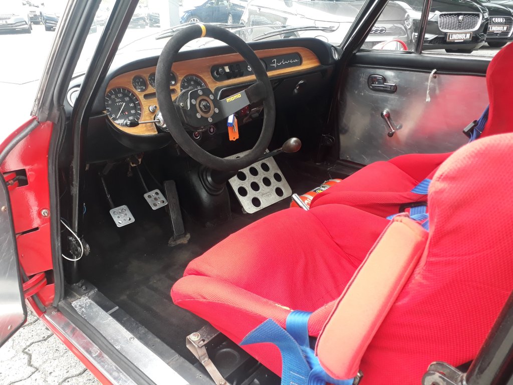 Selvom at Fulviaen er en af de mere letkørte klassikere jeg har på samvittigheden så er det stadigvæk noget man ikke kommer helt sovende til. Til at starte med så er betjeningen af koblingen en af de mere spøjse jeg har prøvet. Den bider først langt oppe i pedalens vandring. Og så er det meget prompte at man når koblingspunket så man skal værre hurtig til at give relativt meget gas for ikke at gå istå. Og da det her eksemplar er udstyret med to dobbelte Weber karburatorer er maskinen lidt koldblodet indtil at man opnår driftstemperatur hvor man ikke skal give for meget gas under sejtrækning for at undgå overfuelling så man drukner maskinen. Selv med varm motor dikterer karbureringen at man skal flyve V4eren i de højere luftlag da Webere ikke helt kan finde ud af det med sejtrækning. Det er enten fuld gas på den højste tinde af omdrejningsregistret eller ikke så meget andet. Men den siger altså fantastisk. Jeg har i noget tid sagt at ligesom at et hvert måltid bliver bedre med et skud ketchup så bliver en hver oldshcool motor bedre med et sæt dobbelte Webere. De ser fantastiske ud i motorrummet og så får man alt den herlige indsugningsstøj jeg elsker. Men ja seriøst så siger den virkelig godt. Der kommer en lavmeldt poppen fra udstødningen under motorbremsning imens at motoren spinder med et arigt metallisk skrig. Når man går på gassen under en hård acceleration brøler den olmt så det næsten resonere igennem bilen. Men det at køre historisk rallybil er en oplevelse for alle sanserne. Udover alle de herlige lyde at drivlinjen udvikler så har man også lyden af småsten der slår mod vognbunden og klapren fra alupladerne der er placeret rundt omkring interiøret nu hvor meget af beklædning og isolering er taget ud. Men man kan også mærke den ru fornemmelse af at holde på Momo alcantara-rattet og så kan man lugte benzinen der løber igennem rør og slanger. Men køreegenskaberne er også ganske iorden i betragtning af at det ikke er den nyeste model. Styretøjet er selvfølgelig ikke assisteret. Men når man er i fart løsner det meget op. Så meget at jeg faktisk synes at det er det styretøj der føltes mest som om det var assisteret af alle de uassisteret styreapperater jeg har betjent. Men den styrer ganske præcist og så føles undervognen fast. Det er lige som det skal værre i en ægte rallyvogn. Ellers lyder dommen på at hvis du ville have en rigtig hulemands-køreoplevelse hvor man ender med at føle sig i live. Så kunne en gammel rallybil værre en god genvej til denne slags køreglæde. Den er absolut ikke til alles smag men for dem der er hooked på det er det som at værre i paradis.