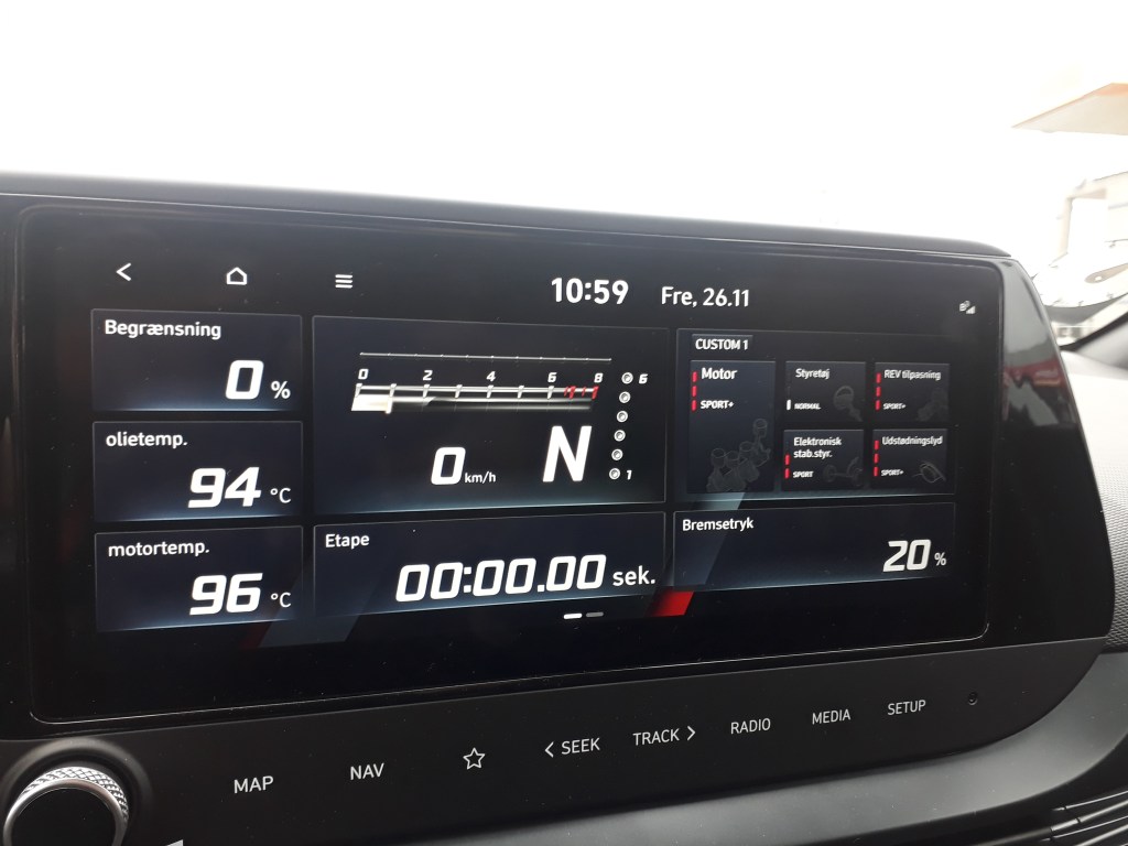 Bare rolig folkens det er bare et lille ubetydeligt og personligt men. For der er stadigvæk rigtig mange store plusser ved dagens testbil. Bare for at nævne nogle få kan jeg sige at det her er en rigtig GTIer og ikke bare en normal i20er med fabriksmonteret skørtesæt. Og til manualgear-elitisterne kan jeg sige at i20 N kun kan fås med den efter dem eneste rigtige type gearkasse nemlig en 6 trins manuel. Eller som jeg ofte siger pind og tre pedaler. Nå ja så har man en relativt normal hatchback-silhuette og ikke noget fjollet coupé-nonsens. Det medvirker til at man faktisk kan se ud af bilen ganske fint. Men hvordan kører den egentlig. Det finder du ud af nu her. Under stille kørsel er i20eren ligesom andre moderne performancebiler meget medgørlig. Selvfølgelig har man en lidt hårdere undervogn og et lidt tungere styretøj og da dette eksemplar er udstyret med performance-pakken hvor man har mekanisk spærredifferentiale “binder” forhjulene også en smule når man manøvrerer på træng plads. Også under motorvejskørsel arter den sig ganske fint den føles meget retningsstabil og så har motoren bundtræk nok til at man kan sejtrække forbi søndagsbilister og andre langsomt kørende objekter i inderbanen. Men for at værre helt ærlige så skal en ægte GTIer selvfølgelig prøves af på de snogede veje hvor man kan spurte op til 60 og prøve nogle kurver og sving af. Under min første hurtige acceleration oplevede jeg både hjulspind og en smule momentreaktion som begge er ganske normale hændelser i højt ydende forhjulstrækkere men så snart man fik bygget lidt mekanisk vejgreb på flyver den faktisk rigtig godt. Selv når man lavede en motorvejstilkørsel med fuld galop følte jeg ikke at den døede meget ud på toppen af momentkurven. Men det er virkelig på de snogede veje at dagens tester hører hjemme. styretøjet kommunikere inputs rigtig fint imens at undervogn og chassis arbejder sammen som én enhed. Hvilket bevirker at bilen føles meget fokuseret og præcis. Men den føles også meget forudsigelig hvilket blandt andet kan tilskrives bremseovervågning som er en del af performance-pakken. Bremseovervågning kan bedst beskrives som en form for udvidet antiskrid som kan sende store mængder bremsekraft ud til det skridende hjul. Man har også auto-revmatch hvor bilen automatisk hæl-tåer for én hvilket resulterer i perfekte og smidige nedskift hver gang. Det føles selvfølgelig piv falskt og ikke særligt ægte. Men det føles stadigvæk meget tilfredstillende. Min krokkodille-hjerne følte i hvert tilfælde en kæmpe grad af velbehag hver gang man hørte et blip med gassen og et par knald fra udstødningen ved indgangen til et sving. Apropos gearskift så er der også ganske fint styr på det i i20eren. Skiftene føles ikke metallistiske og tungt vægtet som i Civic type R men derimod korte og præcise samtidig med at koblingen er nem at dosere. Også førerpladsen er ganske iorden. Selvfølgelig er der lidt mere hård plastik end hvis man købte en dyrere model men alt det fundamentale virker helt fint. forstolene yder rigtig god støtte samtidig med at det meste af komforten er bibeholdt. Læderrattet ligger rigtig godt i hænderne og så er jeg bare taknemmelig over at have en helt gammeldags mekanisk parkeringsbremse og at man betjener klimaanlægget med fysiske knapper så man ikke skal ind i infotainmentskærmen. Men når det er sagt så får man faktisk et ganske acceptabelt infotainment system. Touchskærmen føles responsiv og så er brugerfladen logisk indrettet samtidig med at man har alle de funktioner man forventer sammen med dem man ikke forventer. Især appen med naturlyde havde jeg ikke forventet at finde i en så performance og køreorienteret bil. Men på den anden side har man også N modus appen som viser alt éns telemetri såsom ladetryk olietemperatur pedaltryk på bremsepedalen og omgangstid. Men der var også det lille men fra starten af. Og det er virkelig noget personligt og ubetydeligt men jeg synes stadigvæk at det skulle inkluderes. Det går på at man ikke får nok motorlyd og at maskinen synger underligt og at der generelt bare er for meget falsk drama og ballade ved performancebilerne i dag når det kommer til motorlyden. Men jov jeg synes ikke at der er nok lyd på i20N man kan selvfølgelig godt høre motoren snerre olmt under acceleration og at der kommer et knald fra afgangsrøret hver gang man skifter ned. Men det lyder nedtonet ligesom hvis man ser en film hvor lydfolkene ikke har kunne finde af at gøre deres arbejde ordenligt i postproduction så lydeffekterne har tabt deres fylde og klang. Og så synes jeg at motoren synger falskt om man vil. Den snerrer herligt op til omkring 4500 omdrejninger så begynder den at lyde som en forstoppet R50 mini Cooper S men denne motor er selvfølgelig ikke kompressorladet men turboladet. Det lyder underligt når man kommer fra GTIere som Golf 4 R32 der giver et fuldfedt VR6 soundtrack eller Civic FN2 type R der skriger arrigt derud af. Selv hvis vi ser på andre turbo række4ere hvor især Lancer Evolution serien og Renault 5 turbo 2 har en fed og karismatisk lyd og ikke lyder som en Dyson støvsuger der har fået astma som det er tilfældet med dagens testbil. Men generalt er jeg bare imod den grad af falskhed og spil for galleriet der præger performance biler idag. Når man kører gamle biler er alt det man hører fra drivlinjen ægte. Det er ikke forstærket eller forvrænget på nogen måde. Det er ikke kun når vi taler udstødningslyd. Man kan høre indsugningsstøj eller turbohvislen eller hvinen fra roots kompressoren. Selv en tilfredstillende hylen fra gearkassen kan høres på nogle modeller. Selv når man slipper gassen er det ægte pop og knald man kan høre især hvis éns bil er udstyret med et mere åbent udstødningssystem. For os nørder er motorlyden en vigtig del af en stemningsfyldt køreoplevelse det er også en af de ting der er med til at give hver bi