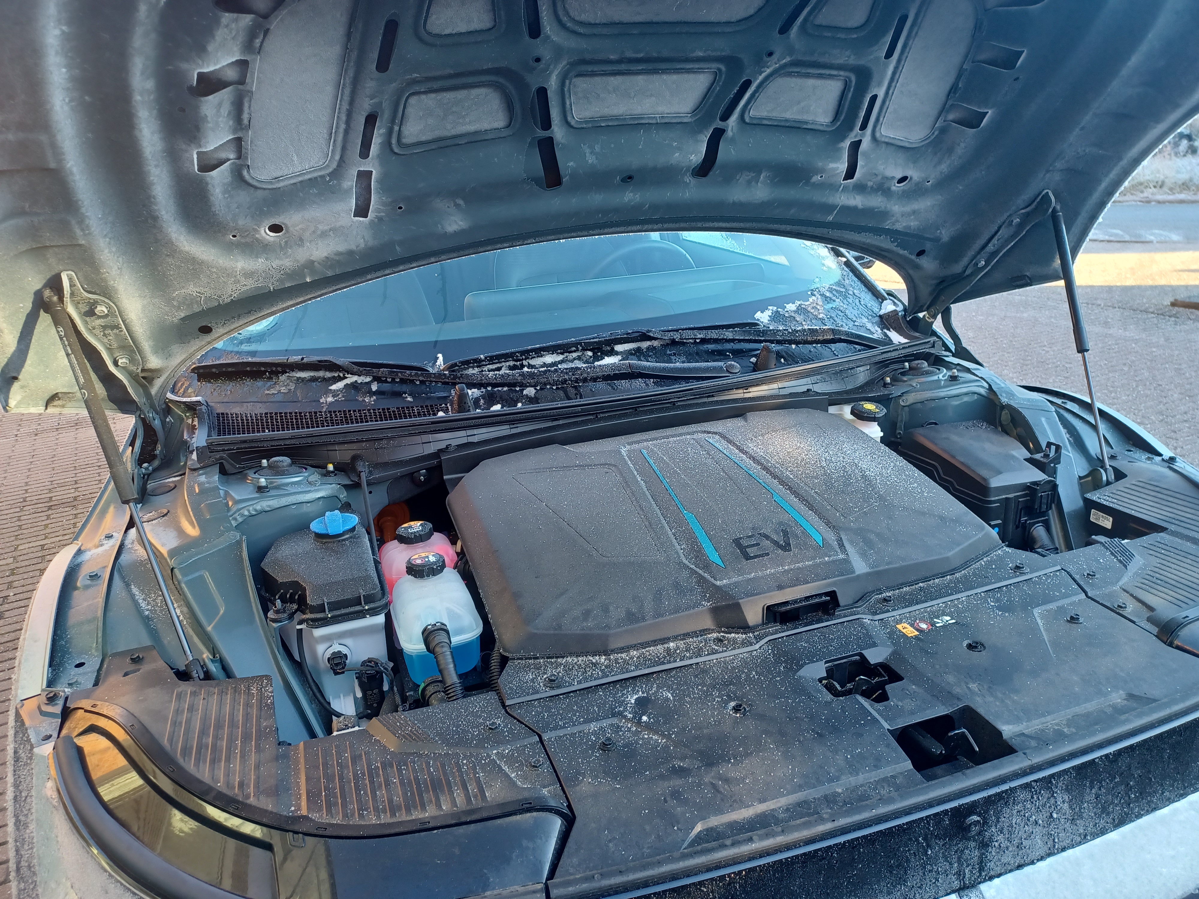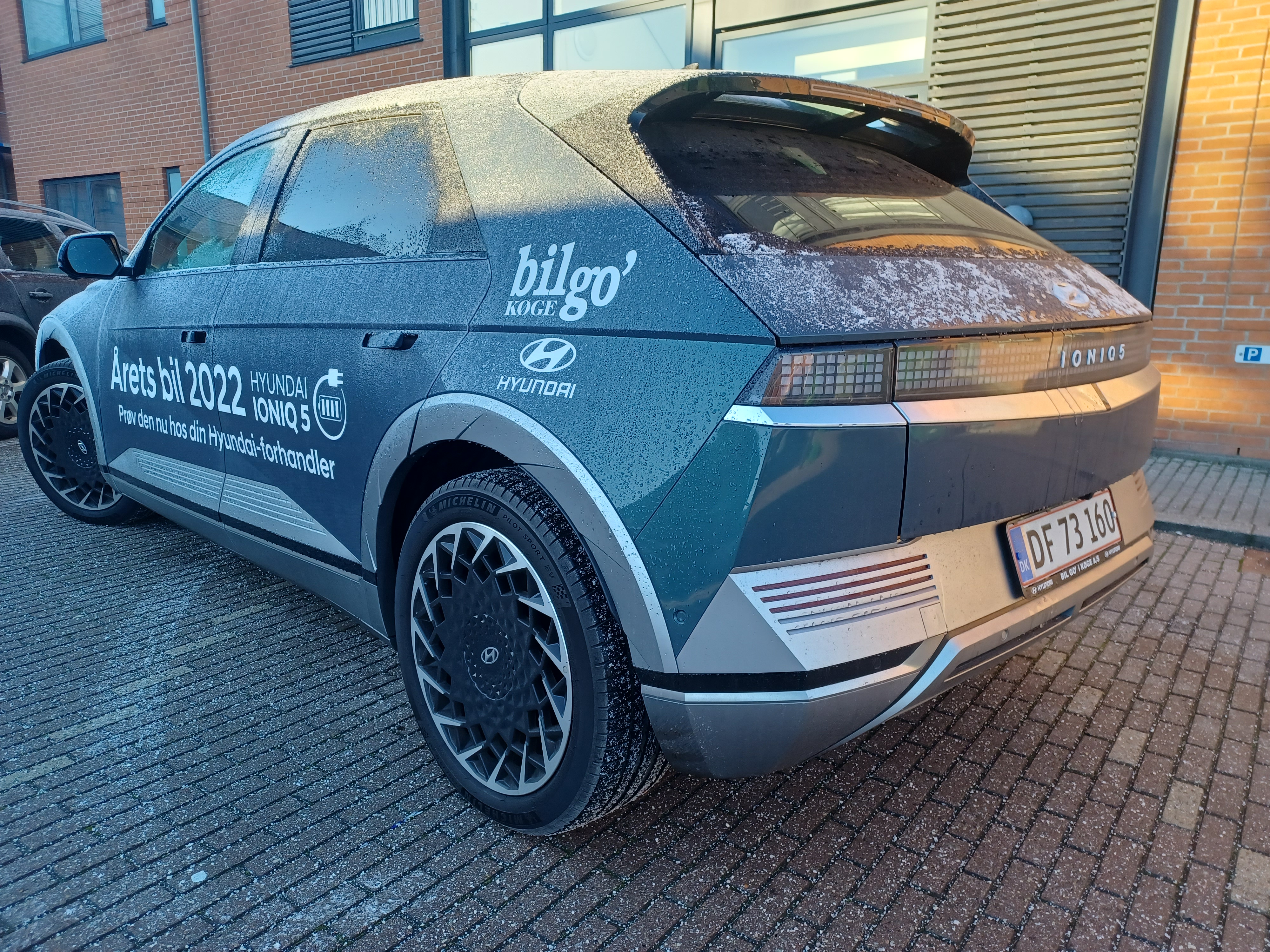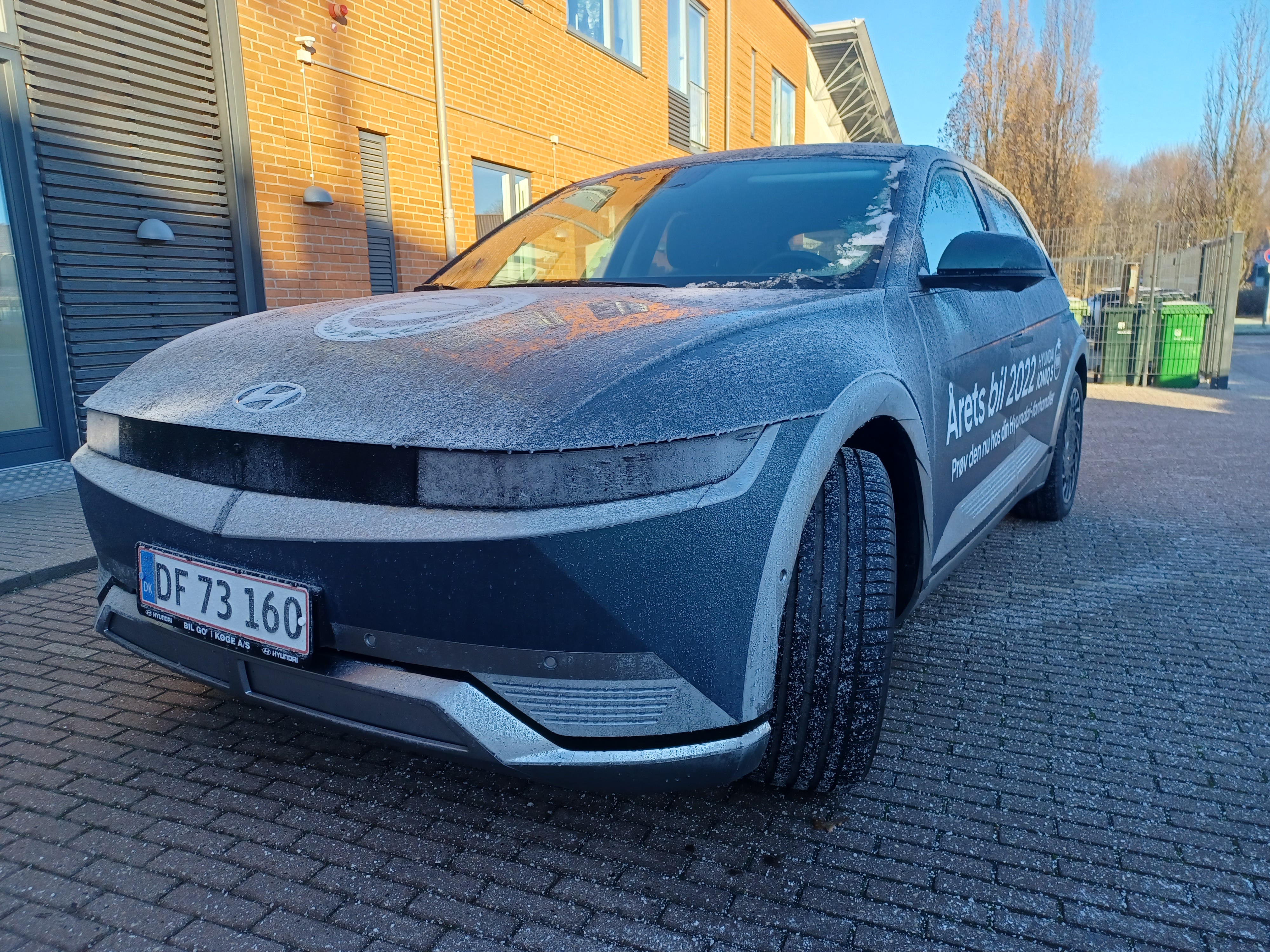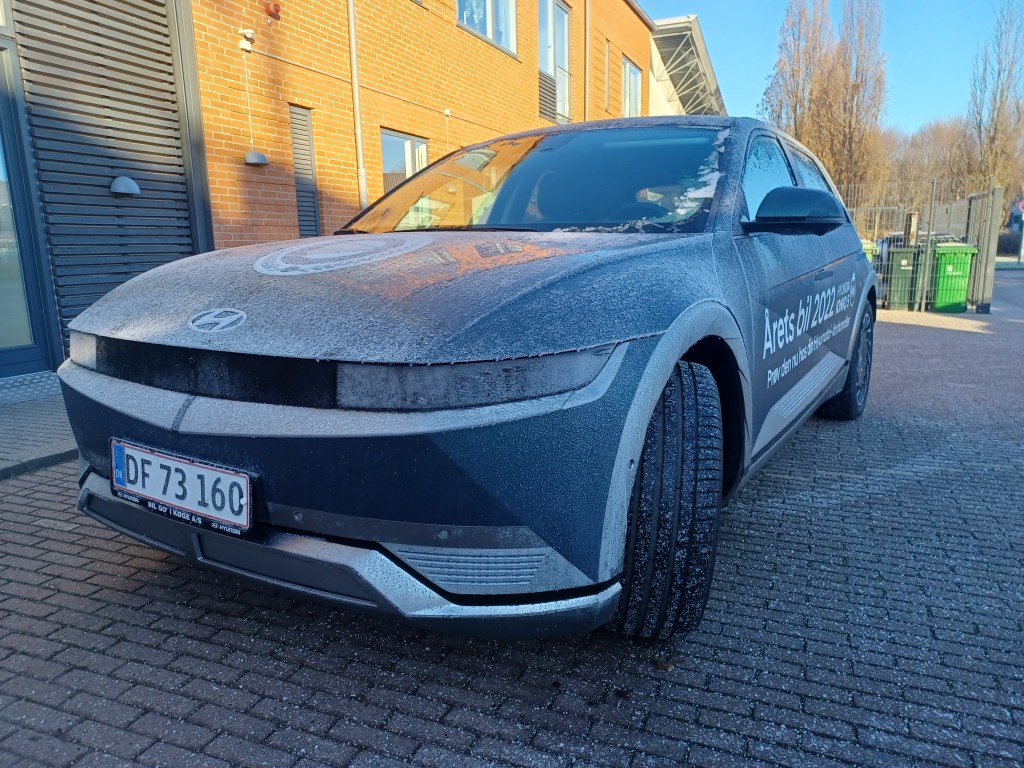 Nære venner ved at jeg er typen der er hudløst ærlig. Og især med udseende er der ikke noget der er pakket ind. Når jeg synes noget grimt synes jeg det er grimt. Men når noget er pænt efter min mening så mener jeg det også oprigtigt. Men jeg synes oprigtigt at det her er en rigtig flot ellert både indvendigt og udvendigt. Udenpå har man et fedt slut 70er start 80er inspireret eksteriør hvor især LED belysningen er en fed detalje med at hvert enkelt lys-element er som pixels i et gammelt videospil. Og så kan jeg bare godt lide at man har klassiske hatchback proportioner selvom at marketings-materialet insisterer på at det her er en crossover. Også interiøret er helt igennem godkendt. Designet er dejligt simpelt eller minimalistisk om man vil. Men hvor at man stadigvæk har skænket ergonomien en tanke med at bibeholde fysiske knapper til de mest brugte funktioner. Jeg endte især med at blive glad for at man har placeret justeringsmulighederne til rekuperation som skiftepadler bag rattet i stedet for at værre en obskur knap i midterkonsolen som at man skal lede efter. Samlekvalitet og materialevalg er også helt i orden. De fleste berøringsflader er beklædt med et eller andet lækkert materiale og så er drejekraven til gearvælgeren og til de andre stilke på ratstammen udført i aluminium hvilket jeg synes er en fed lille detalje i en bil i denne prisklasse. Også når vi taler infotainment går det rigtig godt. Hyundai Kia følger bare rigtig godt med generelt på denne front. Den grafiske brugerflade er logisk indrettet. Og så føltes det som om at der er masser af processor-kræfter til at indlæse alt hurtigt. Det eneste der ikke virkede var stemmestyringen som overhoved ikke gad bare at prøve at lytte til hvad mine kommandoer var. Men det problem har jeg altså haft med andre systemer. Så det siger mere om min dialekt end om systemets formåen. Men det eneste jeg virkelig kan sætte en finger på ved interiøret var at jeg sad lidt højt. Selv med førersædet indstillet til min kørerstilling var der ikke overdrevet meget hoved-plads at give af. Det hjalp dog en smule at tilte hele sædet et hak bagover. Men stadigvæk ikke helt optimalt. Men hvordan kører den egentlig nu især også hvor at det var første gang at jeg sådan rigtigt vinterkørte en elbil. Til at starte var det udvendige håndtag på førerdøren delvist frosset fast så jeg måtte give det et ekstra tryk16 for at kunne åbne døren. Og så kunne man godt få bagenden til at bryde løs nu hvor det her er den baghjulstrukne udgave. Men det er ikke nogen særligt højtydende bil. Men den kører dejlig smidigt og forudsigelig. Det var faktisk kun under visse omstændigheder at den tøvede for et splitsekund når man accelererede hurtigt fra stilstand. Jeg synes heller ikke at den slugte overdrevet meget strøm nu hvor kørslen blev foretaget i minusgrader og med el-bagrude og alskens komfortudstyr tændt for at varme kabinen op. Og koblet sammen med min kørestil hvor at der ikke bliver kørt morfar-kørsel op til fartgrænsen så gik det under omstændighederne godt. Jeg startede i hvert tilfælde ud med omkring 92 procent og kom tilbage med omkring 87 hvis den info kan bruges til noget. Og det var selvfølgelig varieret kørsel det skete med.