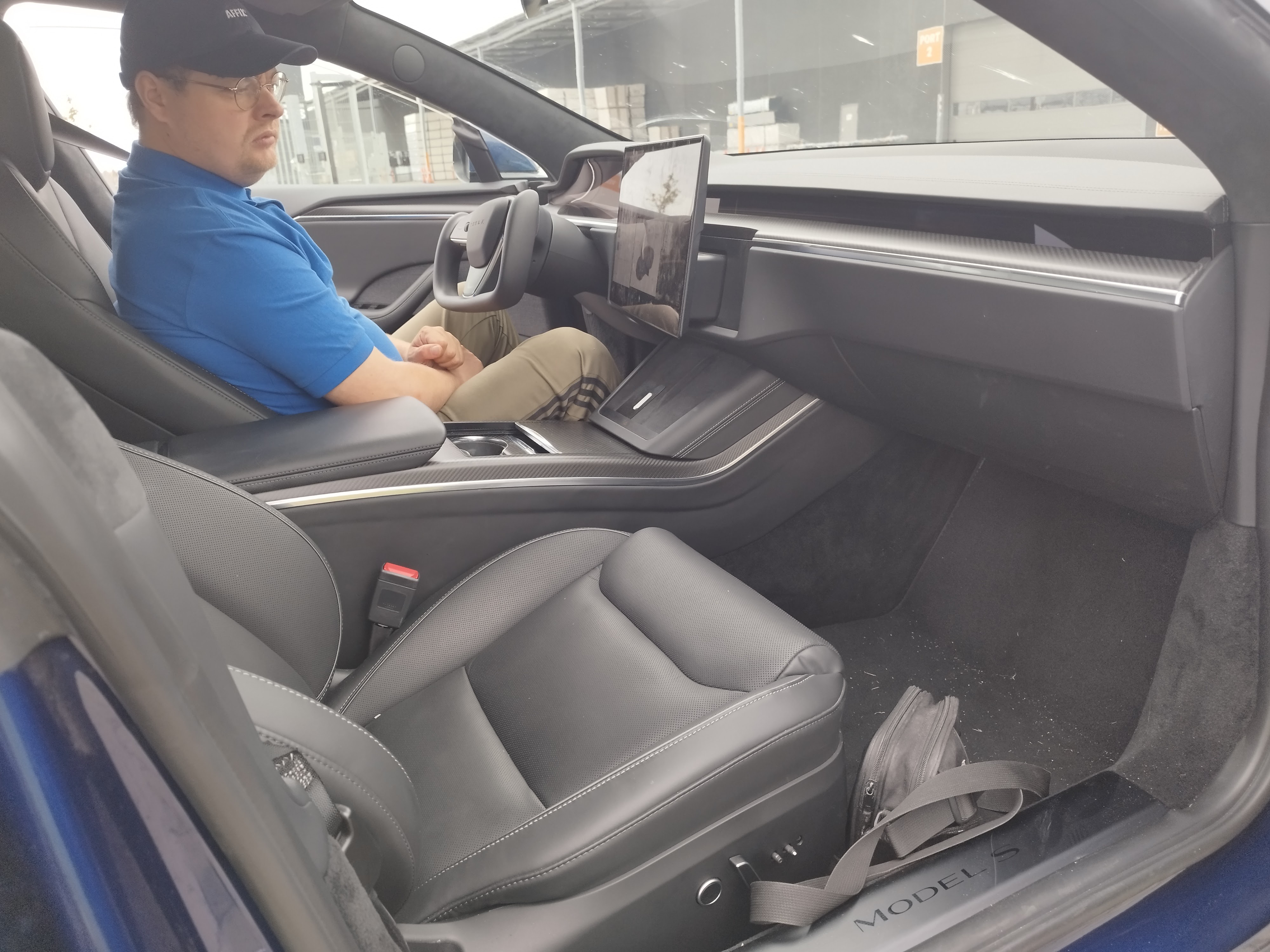 Modsat så mange andre entusiaster har jeg faktisk et godt forhold til en model Ser. Dem af jer der har fulgt bloggen fra start ved at den første Tesla jeg kørte var en model S. Og så har det efter min bog altid været den flotteste model efter udseende at de har lavet. Her i 2023 ville jeg på forhånd sige at Seren stadigvæk er den bedste i lineuppet. Designet er blevet forfinet og opdateret på alle mulige leder og kanter siden den præfaceliftede P85D at jeg kørte tilbage i 2015. For eksempel har man den faceliftede front som kom på i starten af 2017. Imens at man i interiøret har et redesignet instrumentbræt med den nyere type touchskærm som man kender fra blandt andet model Y. Jeg synes også at finishen og materialevalget har fået et hak opad i forhold til normalt. Og ja jeg ved godt at Tesla har fået mange hak for deres kvalitetskontrol eller mangel på samme især når det kommer til kabinekvalitet og lakkvalitet. Og der ville jeg også sige at det er selvfølgelig noget at der skal strammes op på især når vi oppe i de højre prislejere. Men i det store hele føler jeg oprigtigt ikke at der var nogle åbenlyse kvalitetsproblemer med de enheder at jeg har kørt. Men de mest kontroversielle detaljer i indretningen er selvfølgelig rorpinden og den virtuelle gearvælger i touchskærmen. Modsat andre journalister som bare elsker at brokke sig for at brokke sig synes vi faktisk at Yoke-rattet er overraskende nemt at vænne sig til at styre med. Når man kører performance kørsel skal man jo alligevel holde hænderne i 9:15 position. Og da det er en fuldt ud moderne bil med let og smidig servostyring bruger man slet ikke rat-ringen som vægtstang under manøvrering ved lave hastigheder i samme grad som hvis det er en vogn uden assisteret styreapparat. Selv knapperne til lys horn og visker/sprinklere som er placeret på rat-egerne var relativt nemt at vænne sig til. Det endte faktisk med at værre gearvælgeren der krævede mest tilvænning fra min side af. Men det skyldtes udelukkende fordi at grafikken ikke viste tydeligt nok hvilken retning at man skulle swipe for hvilken kørselsretning. Men det var heller ikke værre end at mig og førstepiloten lærte det hurtigt at kende. Men hvordan føles det egentlig at slippe 1020 heste løs. Det føltes både som jeg havde forventet og uden lig noget andet jeg havde prøvet. Allerede ved det første korte træk op til 70 fik man det største los i bagen som hvis en elefant havde sat sig oven på én. Samtidig med at det var den første bil hvor at jeg oprigtigt følte at man teleporterede sig til fartgrænsen. Bare et kort tryk på speederen får speedometeret til at vise ens ønskede hastighed i et splitsekund. Selv under mellem-accelerationerne flyver bilen derudaf imens at man nærmest hænger bagefter i tøjlerne. Desværre nåede vi ikke at bruge det såkaldte dragstrip mode som er det der lidt svarer til launch control på fossilbiler hvor at det som navnet antyder mest af alt er tiltænkt til at blive brugt på dragracing banen. Men når man slår drag mode til begynder traktionsbatteriet at blive forvarmet imens at alle ventilatorer på bilen tændes på fuld styrke. Og så er det noget med at man under en drag start skal holde bremsen inde imens at man bekræfter med speederen. Men normalt plaid program som netop var det næsthurtigste køreprogram var også mere end rigeligt. Men ellers er køreoplevelsen meget typisk Tesla på godt og ondt. Men man har alligevel et smule tungere styretøj og en hårdere bremsepedal end normalt. Men undervognen balancere fint imellem komfort og dynamik og så kommunikerer styretøjet sådan nogenlunde men man kan godt mærke at der meget vægt der skal skifte imellem højre og venstre når man trækker i rorpinden. Så det er ikke det at jeg ville kalde sportsligt men stadigvæk helt perfekt til husbehov.