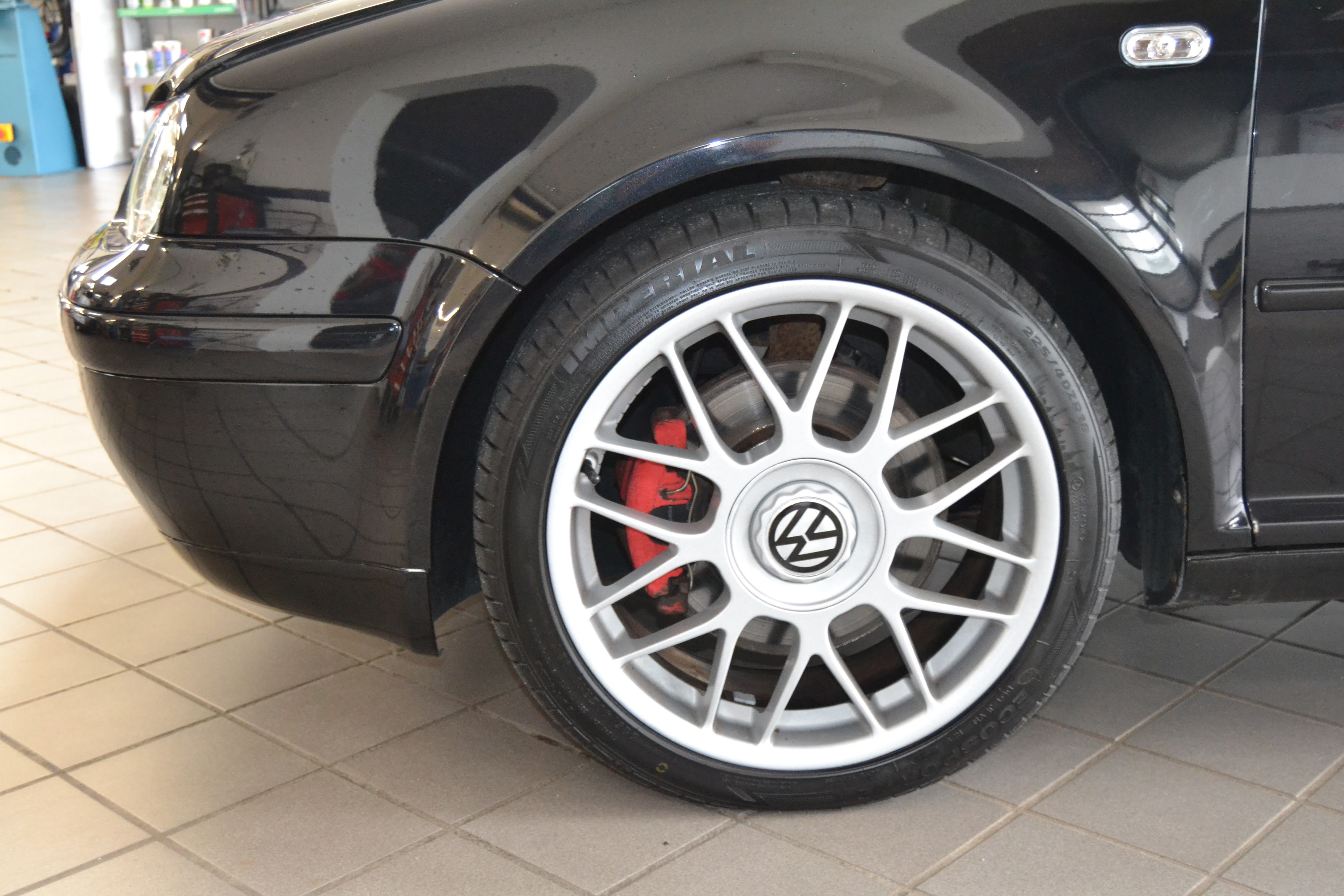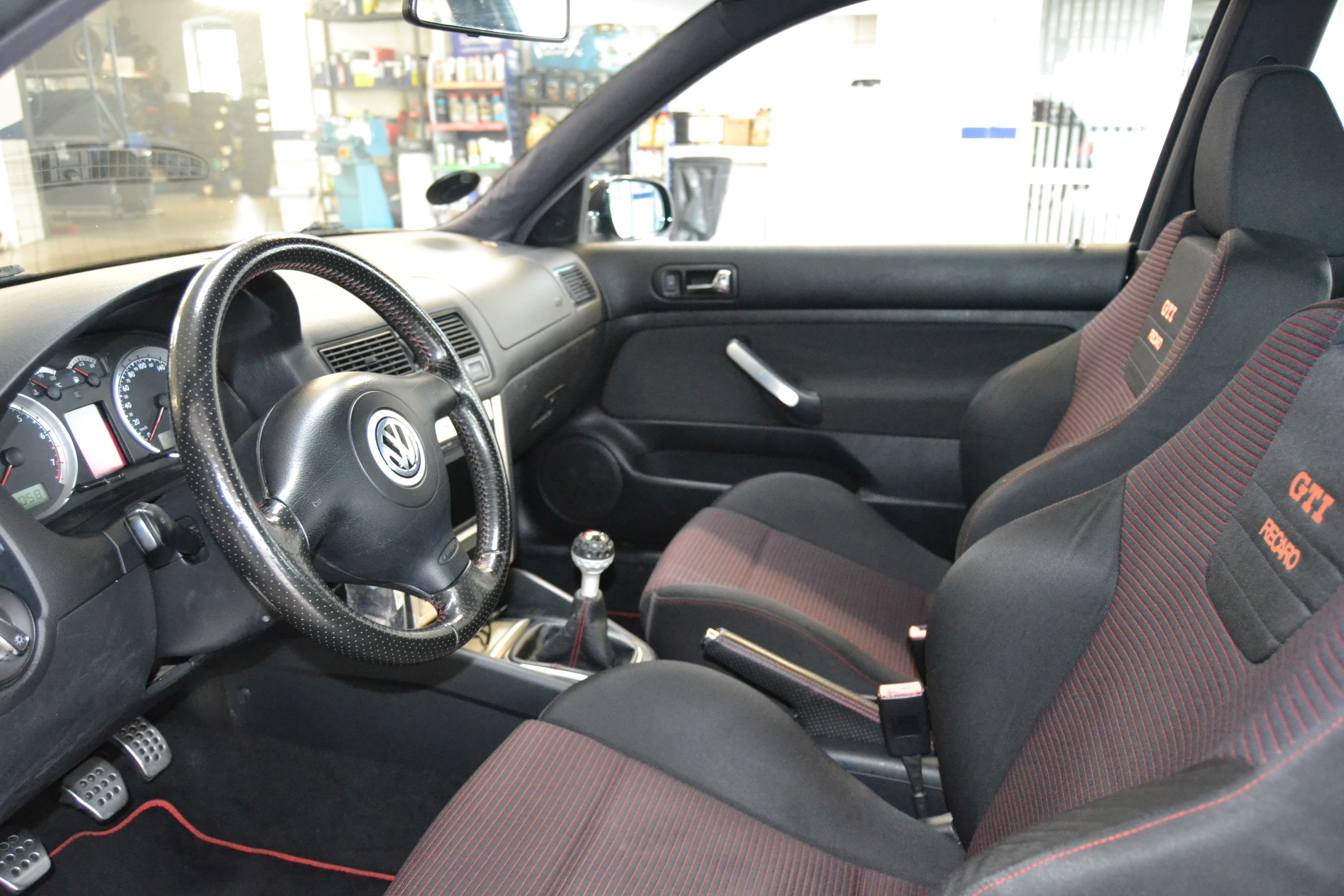 Som jeg har ytret før så er Golf GTI MKIV sku lidt en slap omgang i forhold til MKV. Det var sikkert en ganske god bil men den føltes simpelthen ikke special nok i min bog. For eksempel er motoren den samme 1.8er som i et hav af andre VAG produkter hvor at antal heste er uændret på de 150. Og så har jeg har hørt fra nogle kilder at den kører uinspirerende. Men min største kæphest er fabriksstylingen eller mangel på samme. Jeg har altid synes at hele den der sleeper “bevægelse” er stærkt overvurderet. Så jeg har altid synes at man gerne må flashe det lidt når man har den hurtige model. Der gjorde MKVeren det meget bedre da den visuelt var opgraderet væsentligt og stilfuldt i forhold til standard udgaven. Men hvis vi udelukkende skal tale om design og fabriksgejl så er dette bare den MKIV GTI at den Danske importør skulle havde taget her til landet. Men hvor at det blev spoleret af de inhumane afgifter hertil lands. Men de kosmetiske ændringer højner virkelig designet. Man har større fælge med lavprofildæk samt et diskret skørtesæt med tilhørende tagspoiler hvor at det bliver rundet af med en sportspotte med krom rørhale. Det får hele bilen til at se sporty men også underspillet og stilsikker ud. Det er lidt den tænkende mands GTIer kunne man fristes til at sige. Indvendigt er den også opgraderet hvor at der er monteret sports alupedaler sportsgearknob med golfbold-tema som i MKI og vigtigst af alt et par Recaro sportsstole som støtter godt op om én og éns codriver. Men hvor at de stadigvæk yder ganske god komfort. Men det er ikke kun kosmetisk at jubilæums modellen udskiller sig fra den standard GTIer. For mekanisk er den blevet opgraderet med ting som 312 milimeter skiver til forbremserne og 250 milimeter ventileret skiver bagpå. 6 trins 02M gearkasse mere sportsligt afstemt undervogn. Og sidst men ikke mindst en opdrosling til 180 heste hvilket er noget at jeg altid har synes at GTIeren manglede i denne generation. Men det vigtigste af det hele er om alle ændringerne højner køreoplevelsen. Det ville jeg fortælle om nu her. Efter at have fået den fra stendød af kørte vi stille rundt i området både for at lære den at kende men også for at få noget varme i motor og gearkasse og for at få noget noget olietryk op til turboen. Ved stille kørsel føles motoren overraskende moderne. Den leverer kræfterne lineært hvor at der stadigvæk er noget i bunden og på toppen. Imens at speederresponsen er ganske god. Og man kan også mærke at den har en smule ekstra heste end normalt men det er de mest kedelige 180 heste at jeg oplevet længe. Den gør ikke noget dårligt men den gør så sandeligt heller ikke noget fremragende og spændende. For bare hvis vi bliver ved små motorer og maksimum 4 cylindre så har sådan noget som en Daihatsu Charade GTTI så meget karisma med dens lille turbo3er. Ja selv Lancia Fulvia med den 1300 kubiks smalvinkels V4 lyder helt fantastisk med et sæt dobbelte Webere. Og det beviser jo endnu en gang at det ikke altid er størrelsen på motoren eller antallet af cylindre der dikterer om man kan have det sjovt. Koblingen er fint vægtet imens at den er meget nem at dosere. Imens at gearstangen er lidt en slatten fornemmelse at betjene men det er det altså også i storebror R32. Angående køreegenskaber er den også ganske god uden at værre fremragende. Den ligger faktisk godt nok i svinget med relativt præcist styretøj og en lidt hård undervogn. Men jeg synes faktisk at den arter sig bedre på motorvej idet at undervognen læner en smule mere mod komfort og at man har god retningstabilitet under motorvejskørsel. Så på den måde føles MKIVeren meget alsidig men jeg mangler den fokus på de sportslige ambitioner og ukompliceret køreglæde at nogle af de samtidige konkurrenter besider. Så ville bare sige at den slet ikke når en Civic EP2 type R til sokkeholderne når vi tager det på den her konto.