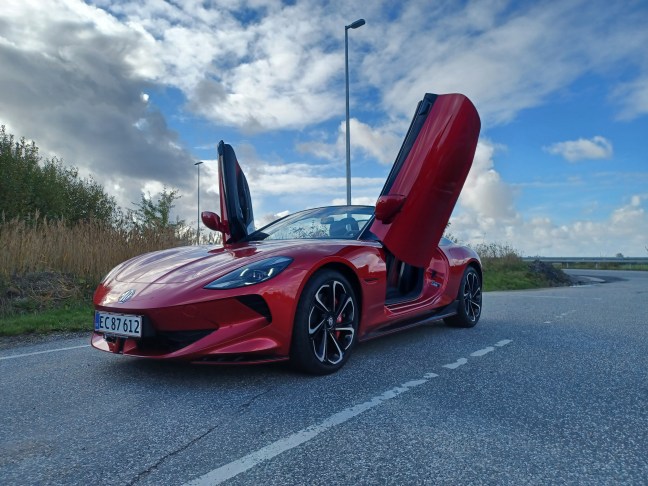 Jeg elsker simpelthen følelsen af at køre åben vogn. Lydene og lugtene fra naturen eller byen. Den varme brise over éns hoved på en varm sommerdag eller de kolde efterårsvinde imens at overskudsvarmen fra maskinen får én til at føle sig varm og bekvem. Men også lyden og lugten af en motor er vigtige sanseindtryk ved openair køreoplevelsen. Den svage dunst af benzinhørm imens at man både kan mærke og høre maskineriet arbejde kan altså noget. Jeg synes at motorlyden helt klart også er med til give hver bil sin egen karakter. Og det er uanset om det er den 4 cylindres snerren fra en S2000er et V8 brøl fra en Mustang GT et arrigt vræl fra en 348 spider eller melodisk række 6 skønsang fra en Z4 M roadster. Det hele er simpelthen fantastisk. Så jeg har altid været spændt på om fraværet af motorlyd overhovedet ville bedrage positivt til køreoplevelsen. Og så ville jeg bare også undersøge om MG har leveret et ordentligt produkt. Nu hvor at de har bragt en elektrisk sportsvogn til markedet før både Tesla og Porsche. Men jeg tænker ikke at vi skal have så meget udenomssnak for lad os komme til testen.