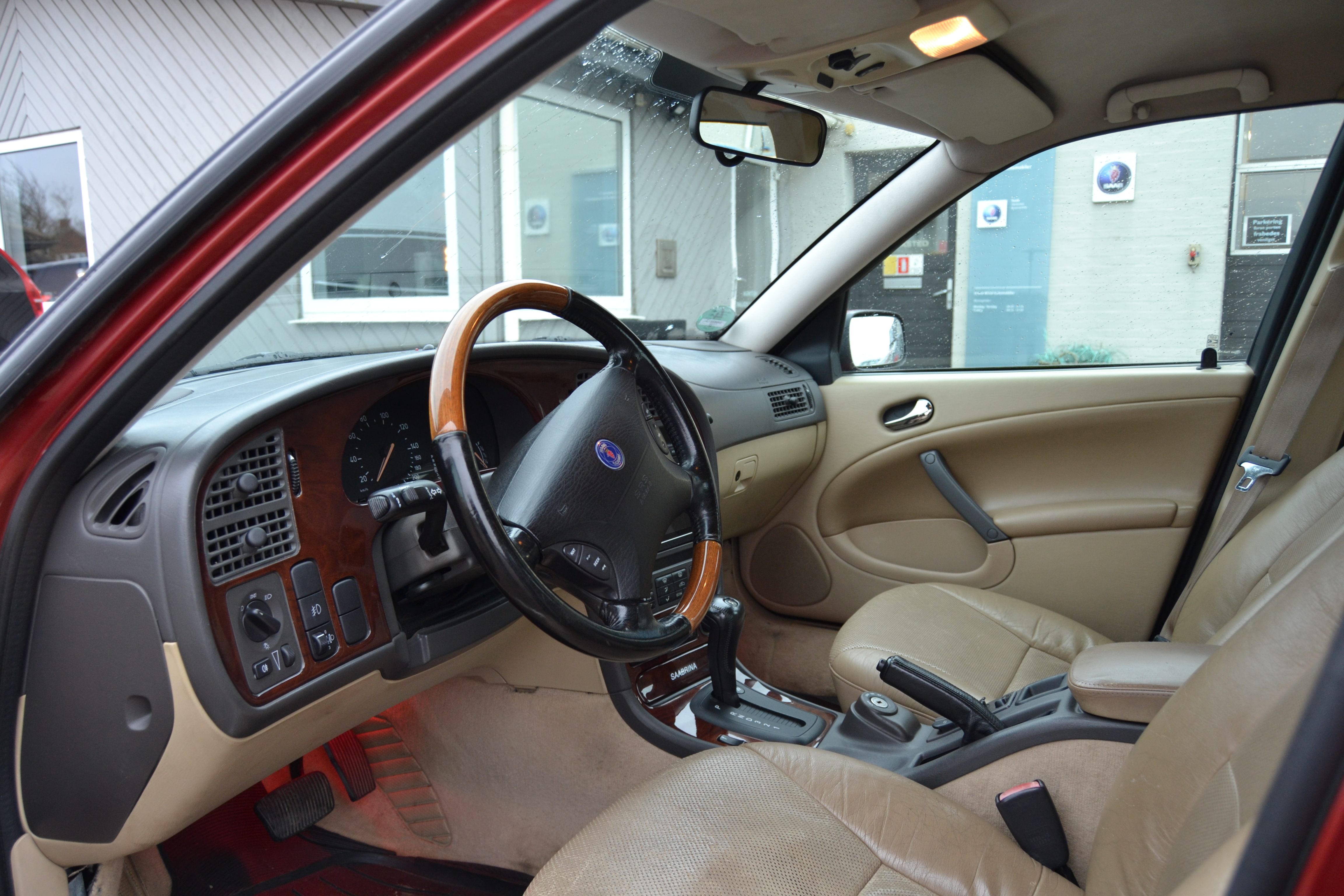 En ting at jeg godt kan lide ved gamle biler er de gamle dyder. Hvor at jeg nogle gange kan blive helt forvirret hver gang jeg får en helt ny bil til test hvor jeg føler at jeg er nød til at bruge et par minutter på at finde ud af hvilken funktion der bliver betjent med hvad. Der kan jeg med de ældre modeller bare hoppe ind justere rat sæder og spejle uden for mange spørgsmål hvorpå bare at køre derud af. Dagens tester opretholder ikke kun de klassiske Saab-dyder men også de gamle dyder indenfor bildesign og konstruktion. Bare sådan noget som farver og temaer i interiøret er totalt gammeldags men hvor at jeg bare æder det råt. Man har en mørk nuance af biege til læderstuen som går herligt sammen med det mørke nøddetræs-indlæg. Jeg synes faktisk at det ser varmt og indbydende ud. Ja som et sted hvor at man faktisk har lyst til at tilbringe en lang køretur modsat mange nye interiørs forskellige nuancer af mentalsygdoms grå med et skud alu-trim der bare føles koldt og sterilt. Men ikke nok med at det ser behageligt ud så sidder man også ganske behageligt som fører af 9-5eren. Da dette er Griffin udgaven som er det mest luksuiøse udstyrsnieveau har man nogle meget komfortable forsæder med mange justeringsmuligheder hvor at der sågar er både ventilation og varme hvilket stadigvæk var lidt usædvaneligt i denne prisklasse. Forstolene yder ikke så meget sidestøtte men det har man heller ikke behov for i denne slags bil da den mere spiller op til luksus og komfort end til performance. Og der hjælper undervogn og styretøj det faktisk rigtig godt på vej. Faktisk synes jeg at undervognen er oprigtig godt opsat. Den glatter bump og ujævnheder ud på herligeste vis men hvor at den stadigvæk ligger selvsikkert igennem svingene til at man kan lave en hurtig manøvrer sikkert og forudsigeligt. Man får i hvert tilfælde en mere ægte følelse af luksus end i Hyundai XG350 som giver følelsen af falsk luksus. Jeg ville faktisk rangere den oppe sammen med Citroén C6 som efter min mening er den gyldne standard indenfor forhjulstrukne luksusbilsplatforme. Men angående styretøj styrer den også helt fint. Der er den rigtige tyngde i styreapparatet imens at det styrer præcist nok og kommunikerer fint nok feedback tilbage til det man har brug for i denne biltype. Også angående motor og gearkasse føles det bare oldschool og iorden. Singleturbo V6eren føles ganske civiliseret med at den udvikler krafterne lineært uden turbotøven som ellers kendetegner andre turbo-Saab. Der er heller ikke noget turbostøj. Jeg kunne i hvert tilfælde ikke høre noget fra førerpladsen. Aisin automatgearkassen leverer helt gammeldags konverter performence ved at skifte blidt ved stille kørsel. Hvor at den går fint i kickdown når man skal foretage en hurtige hastighedsændring hverken mere eller mindre. Det er selvfølgelig ikke nogen hurtig bil efter nutidig standard. Selv den mest gennemsnitlige Tesla ville spankulere lige hen over den i et dragrace. Men som jeg har sagt før synes jeg at 200 til omkring 300 hestekræfter er mere end rigeligt til de fleste mennesker og til kørsel på offentlig vej. Og hvis den skal flytte sig så kan den det sagtens. Det er bare et spørgsmål om at trykke lidt ekstra på sømmet indtil at man skyder en god fart. Men total-oplevelsen er stadigvæk det der for mig er sexappealen ved at køre gamle biler. Lydene lugtene vibrationerne og hele det med at man kan mærke motoren arbejder og trækker. Og det er uanset om det er i en Ford A fra 1931 eller et gammelt Svensk privatfly som 9-5eren.