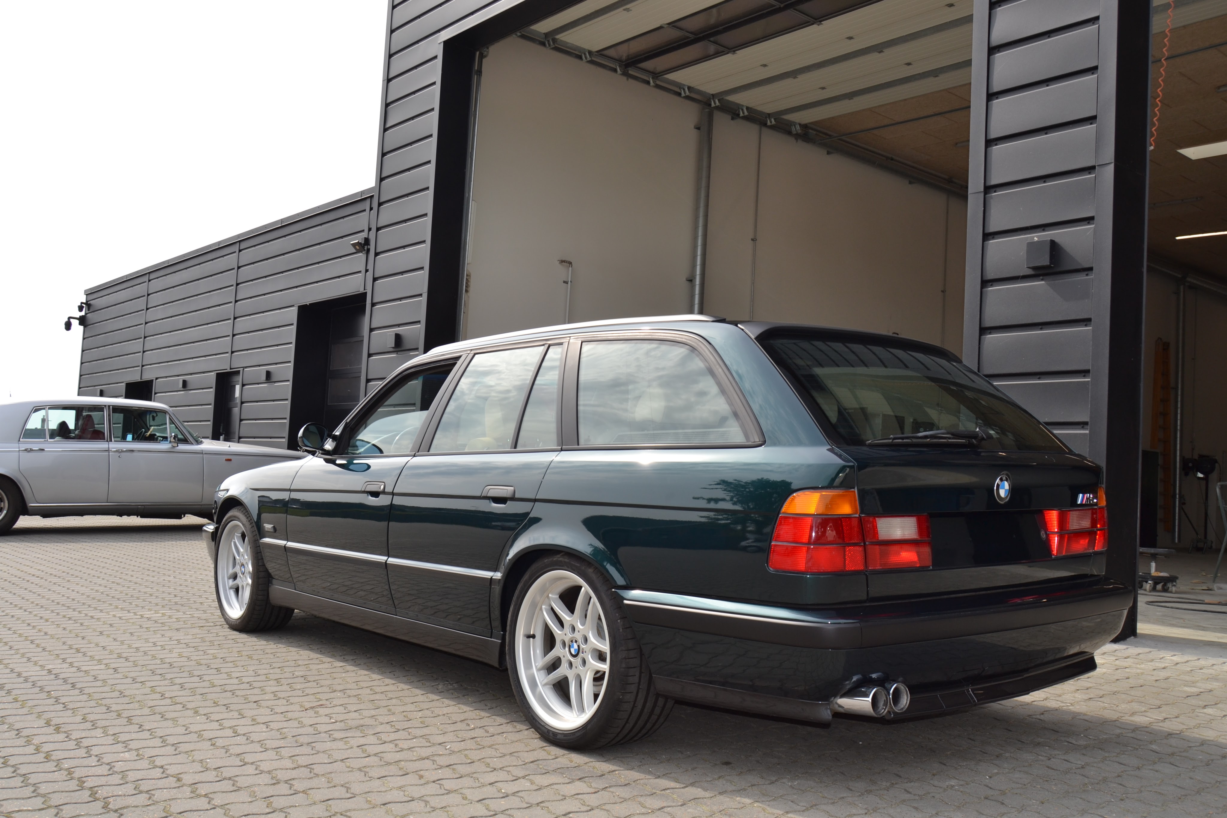 Selvom at jeg altid ville værre mere E39 person så tror jeg lidt at denne eksakte E34er har vundet over mig. Først og fremmest er jeg helt vild med farvekombinationen eller speccen som popsmarte instagram bilnørder kalder det. Oxford grønmetal over biege læder ser bare så klassisk elegant ud at der næsten ikke er et øje tørt. Det går virkelig godt til et hav af gamle smukke biler. Og så er det lidt af en ønske bilfarve for mig da jeg stadigvæk har en drøm om at eje en bil i denne farvekombination. Men fælgene står også virkelig godt til den. Det er lidt et stjerneeksempel på at fælgene virkelig kan gøre en bil eller højne dens udseende på ganske effektiv vis. Hvis man vælger fælge med omhu. For har set andre E34 M5ere at der står på de mere lukket turbinefælge hvor at de ser mere underspillet ud. Imens at den står fantastisk på style 37 som er det testbilens fælge bliver kaldt i bimmer-kredse. Men også bare kombinationen af shadowline lister og sølv metal fælge kan noget. Men også i motorrummet er der stil over den. Jeg har sagt det før men jeg siger det igen. Men jeg elsker altså individuelle spjældhuse. Elsker lyden af dem og især udseendet af dem. Og i E34eren er det ingen undtagelse. Seks trompeter der stikker ud til siden hvor at det bliver toppet af et magnesium ventildæksel ser helt rigtigt ud. Men heldigvis er det også en bil der kører ligeså godt som den ser ud. Og så er ergonomien og indretning af førerpladsen lige i øjet. Når man har kørt og ejet bimmer før er det næsten så let som at lege. Det tog mig hvert tilfælde ingen tid at stige ind justere rat førersæde og spejle. Alle greb og kontakter er logisk placeret og lige indenfor rækkevidde. Og så er udsynet helt iorden. Man har tynde A stolper og ikke nogen nævneværdige blinde vinkler. Så man ser helt fint ud af bilen. Jeg kan også lide dens smidige betjening og civiliseret fremfærd under stille kørsel. Det giver den en høj grad af letkørthed under normal kørsel at mange burde kunne værdsætte. Koblingen er helt fint vægtet hvor den er nem at dosere. Imens at gearvælgeren klikker glat igennem de 6 fremadgående gear. Skiftemønsteret er nemt at finde rundt i. Styretøjet føles også ganske fint. Der er den rigtigt vægtet fornemmelse fra den hydrauliske servostyring. Hvor at det styrer præcist i betragtning af at det ikke er en fuldbyrdet sportsvogn. Angående undervogn synes jeg også at den er yderst velafstemt. Der er den helt rigtige balance imellem komfort og dynamik. Ujævnheder i asfalten går næsten ubemærket hen. Men hvor at et hurtigt sving kan tages uden nævneværdig krængning. Når vi taler motor er det efter min bog bare en så fed maskine. Det er et punkt der næsten tilegner bilen to personligheder. Når man kører stille belønner den føreren med smidig gangkultur og kraftudvikling meget veldresseret ville jeg næsten sige. Men når man kaster den et gear eller to ned kommer dragen næsten op i den. Når man passere 4500 omdrejninger i minuttet bliver maskinen næsten vækket til live. Den giver et lille ryk som om at det var Honda V-tec hvor at den vræler arrigt fra afgangsrøret imens at gasspjældene brøler olmt. Den er helt klart mere omdrejningsvillig end S54 som leverer kræfterne mere smidigt. Men S38eren har stadigvæk massere af brugbare krafter i bunden af omdrejningsregistret til dagligdagsbrug og så synes jeg næsten at den mere uraffineret kraftudvikling er næsten ligeså sjov at køre med da det føles ganske tilfredsstillende med at der kommer et kort ryk når man stiger op i de tyndere luftlag. Det er også én af de motorer der næsten lyder bedrer når hurtigere man kører eller i det mindste synes jeg bare at den laver alle de rigtige lyde.