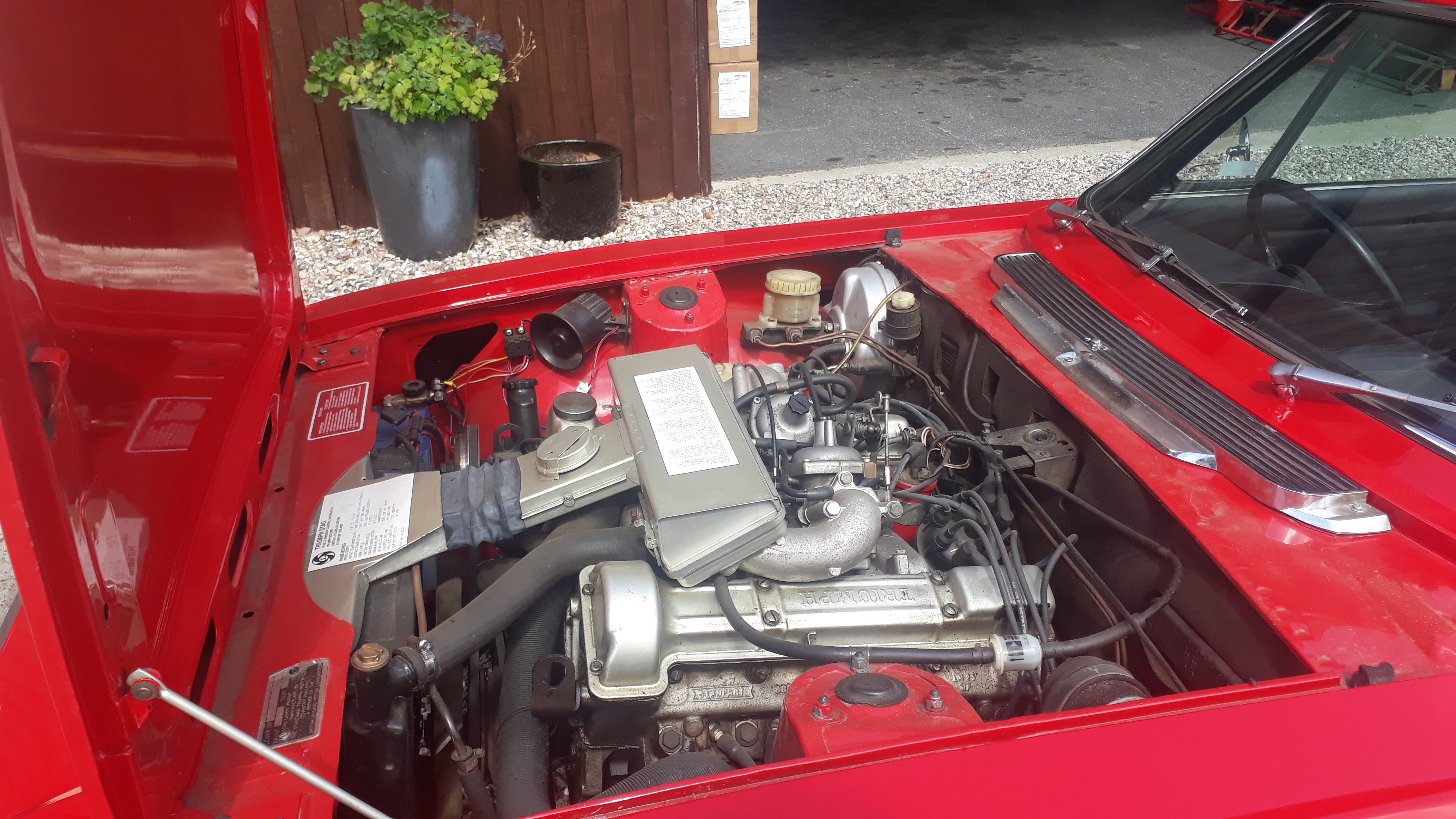 V8eren med to SU karburatore. Gør det faktisk godt ved motorvejs fart.